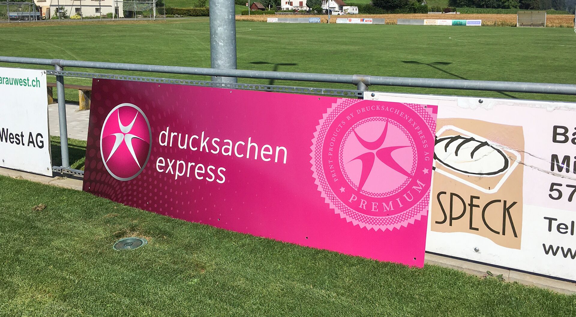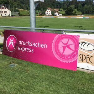 Wir bringen deine Botschaft nach draussen. Mit einer professionellen und genau auf dein Design abgestimmten Bandenwerbung ziehst du bei Events oder Sportanlässen die Aufmerksamkeit auf deine Firma.