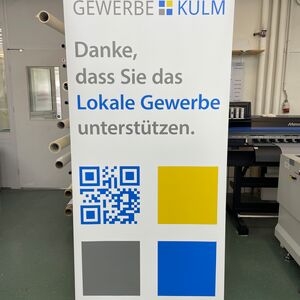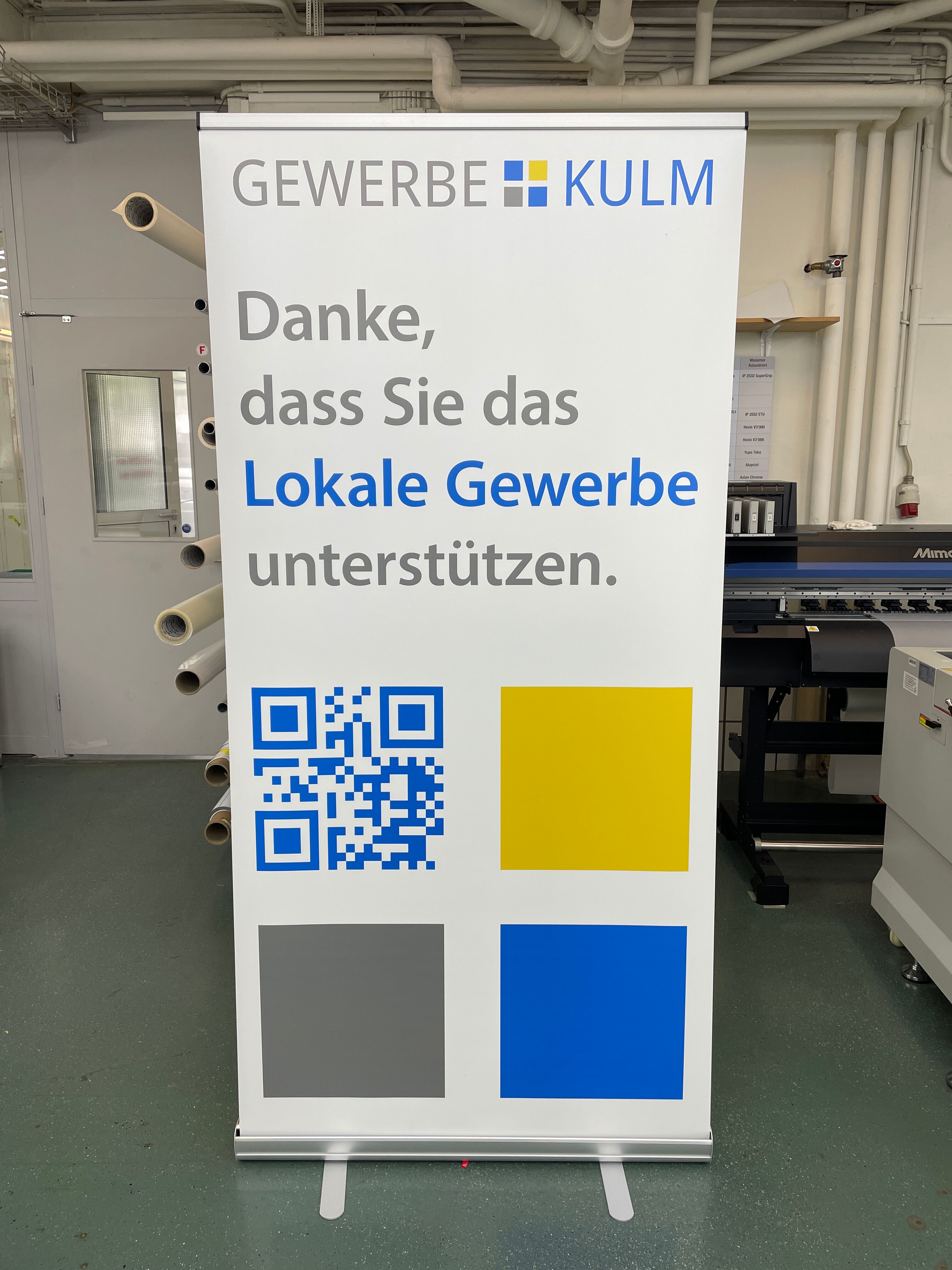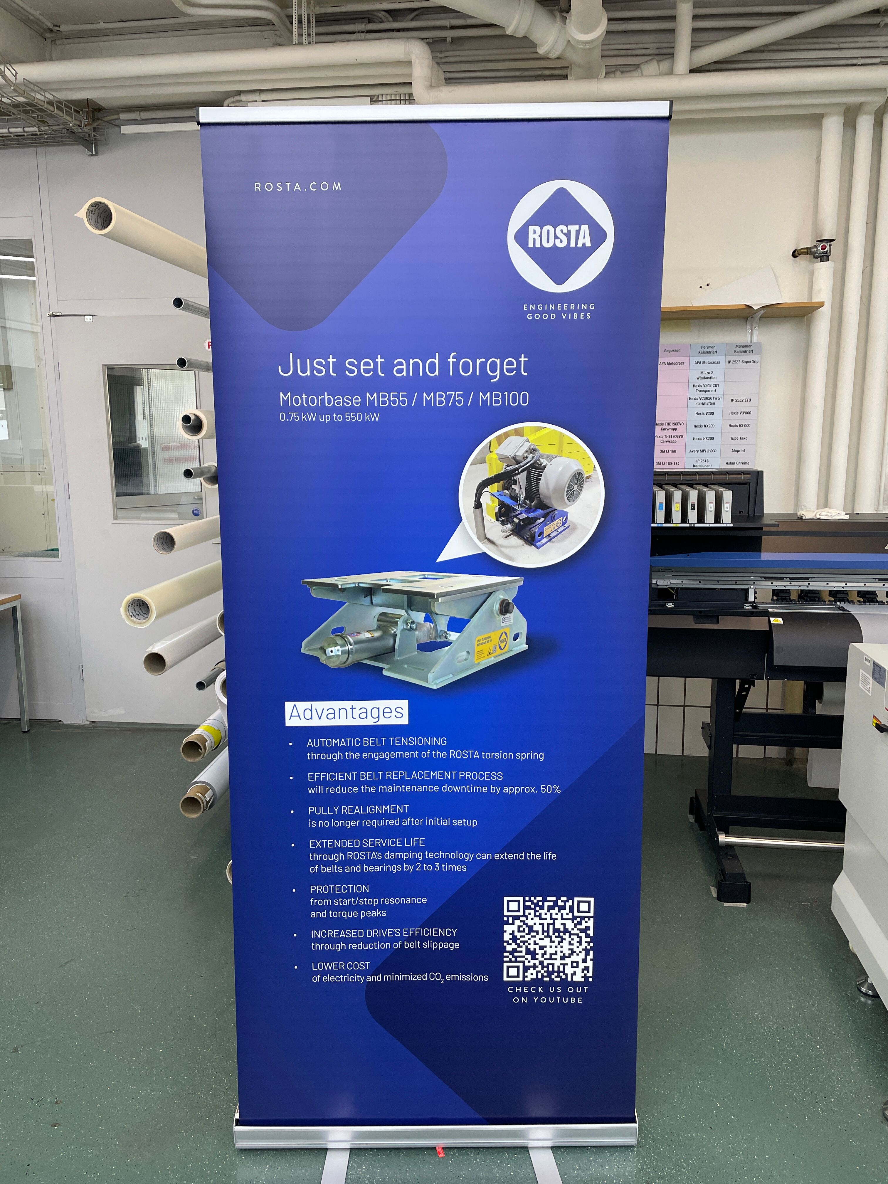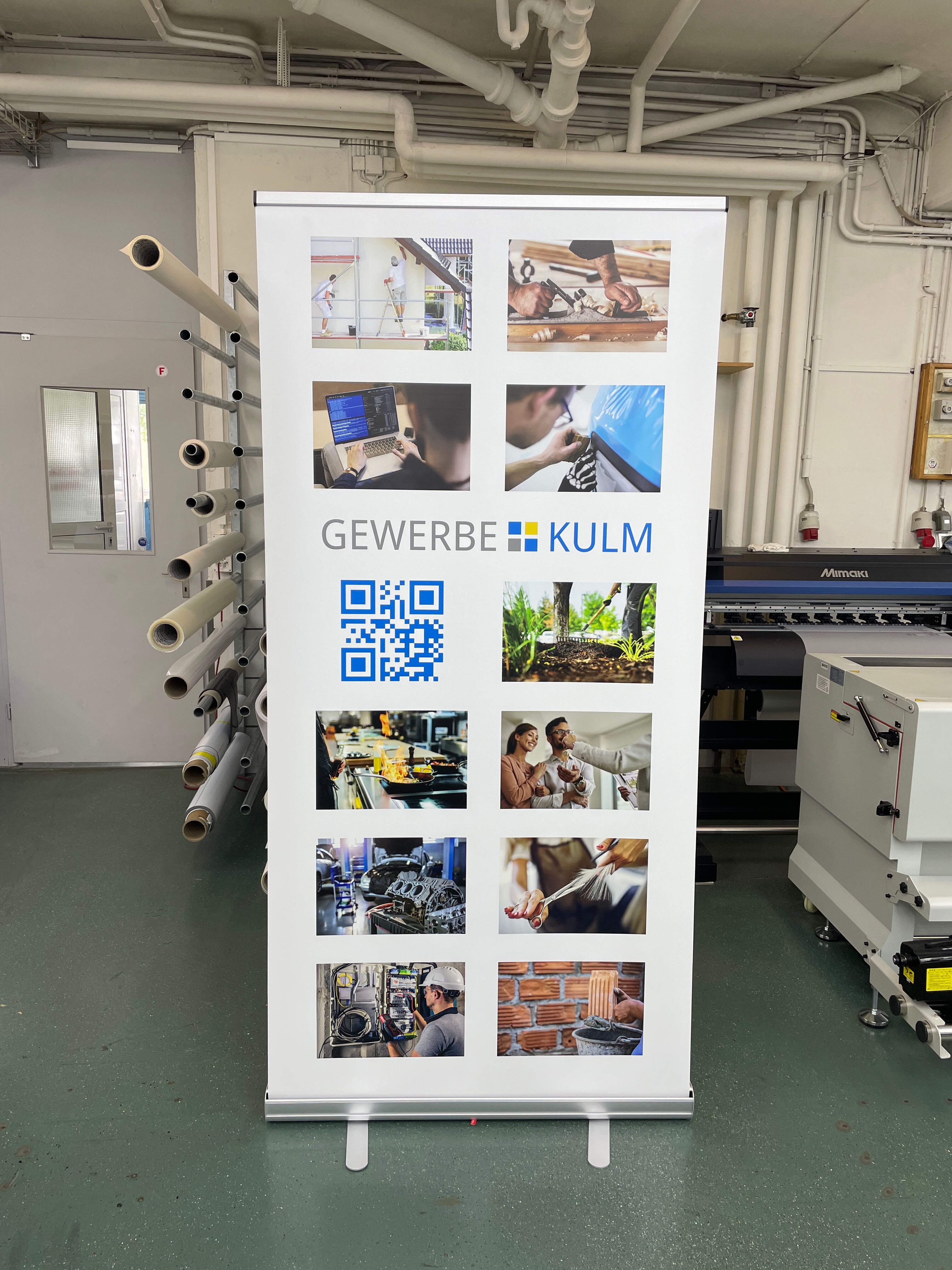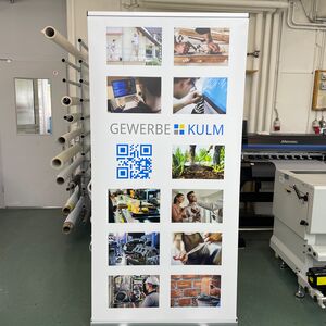 Mit unseren Roll-ups oder Schildern ziehst du die Blicke auf dich. Sie eignen sich für deinen Empfangsbereich in der Firma, Events oder einen Messestand.